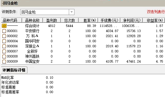 当上述三个条件同时满足时,“小金枪”信号被触发,以黄色标记,并通过黄色柱状线在主图上直观展示,为投资者提供了清晰的买入参考。