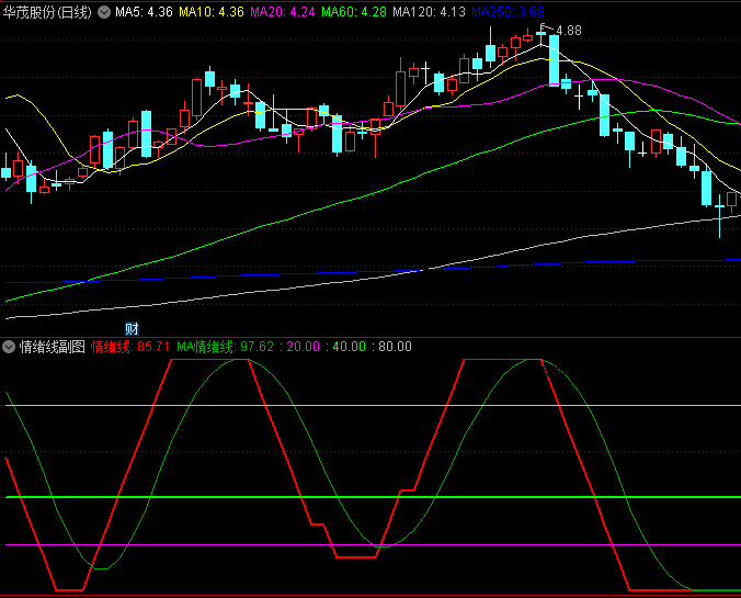 2.均线辅助判断:情绪线通常与移动平均线结合使用。