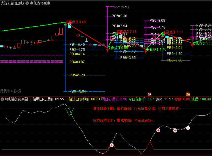 通达信【高低点预测】主图+【K线解盘预测】副图指标,预测高低和明天,有未来函数!